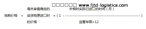 第三十二條  減稅或者免稅進口的貨物應(yīng)當補稅時,應(yīng)當以海關(guān)審查確定的該貨物原進口時的價格,扣除折舊部分價值作為完稅價格,其計算公式如下: