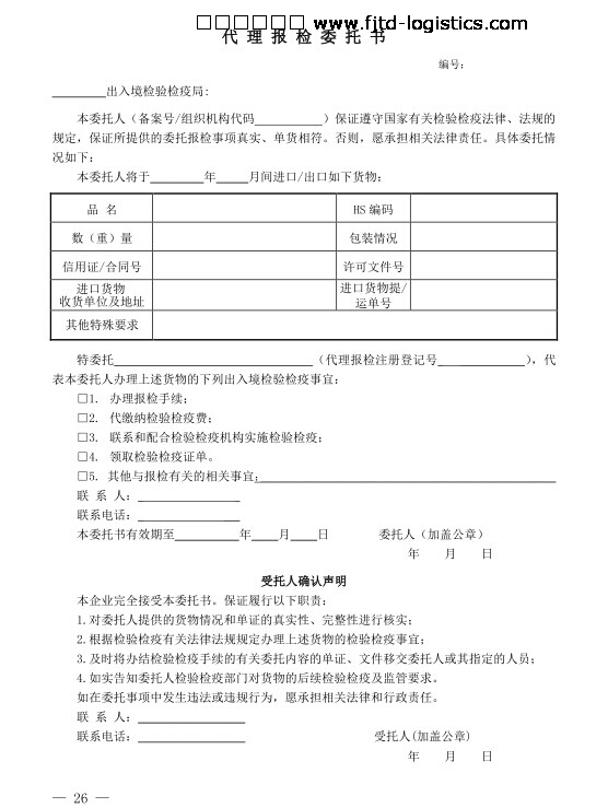 FJTD代理報(bào)檢委托書(shū)(樣本下載)