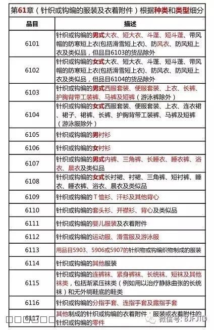 歸類依據(jù)五花八門,讓人眼花繚亂,但是最常見的也就這么幾個:用途、材質(zhì)、種類、加工方法……我們可以根據(jù)常識現(xiàn)在做一個大致的判斷。比如一說到服裝,我們馬上就能想到各種各樣衣服,如襯衫、T恤、風衣、夾克、上衣、西服、牛仔褲、短褲、內(nèi)衣、睡衣……這明顯屬于種類(當然還分類別:男式、女式、兒童),可以判定,服裝肯定會根據(jù)不同種類劃分出很多不同的HS編碼。換句話說,要想確定服裝的HS編碼,必須先確定是什么種類的衣服,是不是這個理?