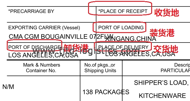 比如:客戶在無水港——石家莊交貨,貨代安排拖車,通過陸運(yùn)拉到天津港,然后在天津港裝船出運(yùn)。這時,石家莊就是收貨地Place Of Receipt了,而裝貨港/起運(yùn)港則是天津港。