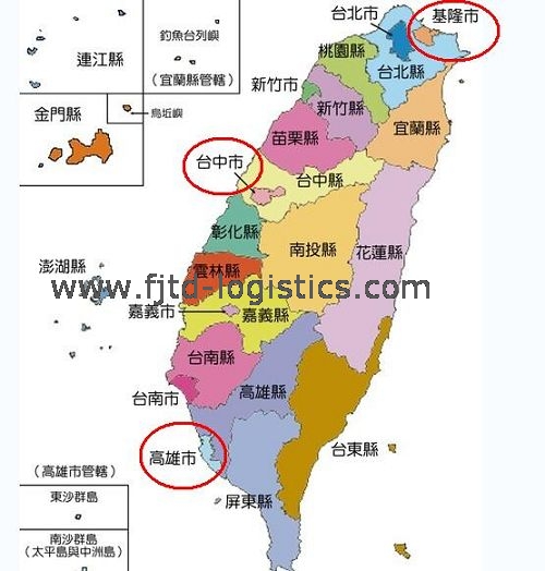 臺灣線的主要港口有高雄KAOHSIUNG、基隆KEELUNG和臺中TAICHUNG。這是臺灣的三個基本港。