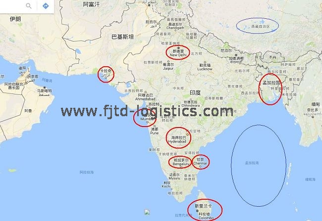 印度的Bombay(孟買)、Nhava Sheva(孟買新港/那瓦舍瓦)、Madras(馬德拉斯)——現(xiàn)在叫Chennai(金奈)、Calcutta(加爾各答)、New Delhi(新德里);巴基斯坦的Karachi(卡拉奇);孟加拉國(guó)的Chittagong(吉大港);斯里蘭卡的Colombo(科倫坡)等。以上港口為各個(gè)國(guó)家的基本港。