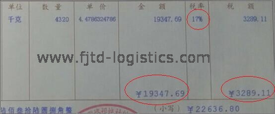 廠家開(kāi)出的增值稅發(fā)票,不含稅金額是19347.69元,增值稅率17%,已繳納增值稅=19347.69*17%=3289.11,因此已含稅的FOB貨值=19347.69+3289.11=22636.80。同時(shí),報(bào)關(guān)單的成交方式為FOB,申報(bào)金額為4536usd,退稅率為9%,如圖: