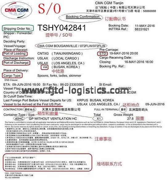 調(diào)箱單(S/O)樣本