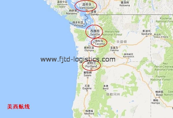 美西和美東航線上的港口,基本都是船公司到美國掛靠的基本港。其他較小港口以及內(nèi)陸點,在航線上常作為美國內(nèi)陸點看待。