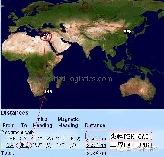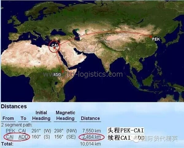 運(yùn)價(jià)表中CAI、ALY、ADD、JNB…對(duì)應(yīng)的價(jià)格,是北京到各點(diǎn)的全程運(yùn)價(jià)(PEK-CAI、PEK-ALY、PEK-ADD、PEK-JNB…),含中轉(zhuǎn)和二程費(fèi)用。其中,PEK-CAI是直飛,PEK-其他機(jī)場則是在CAI中轉(zhuǎn)。
