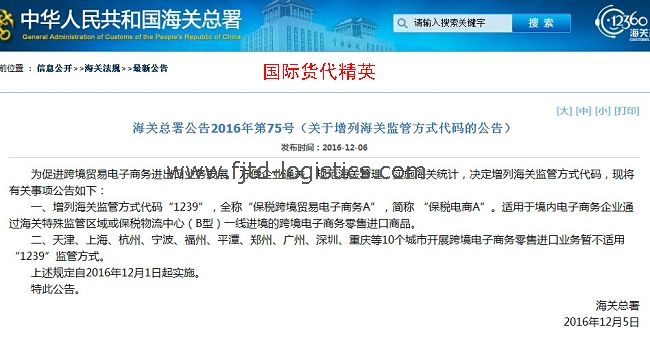 為促進跨境貿(mào)易電子商務進出口業(yè)務發(fā)展,方便企業(yè)通關,規(guī)范海關管理,實施海關統(tǒng)計,決定增列海關監(jiān)管方式代碼,增列海關監(jiān)管方式代碼“1239”,全稱“保稅跨境貿(mào)易電子商務A”,簡稱 “保稅電商A”。適用于境內(nèi)電子商務企業(yè)通過海關特殊監(jiān)管區(qū)域或保稅物流中心(B型)一線進境的跨境電子商務零售進口商品。同時,天津、上海、杭州、寧波、福州、平潭、鄭州、廣州、深圳、重慶等10個城市開展跨境電子商務零售進口業(yè)務暫不適用“1239”監(jiān)管方式。此規(guī)定自2016年12月1日起實施。