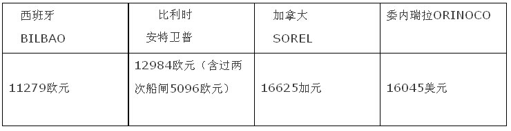 3萬(wàn)多噸的船,靠下列歐美港口,拖輪費(fèi)如下:
