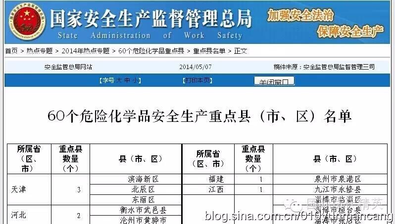 60個危險化學(xué)品安全生產(chǎn)重點縣(市、區(qū))名單