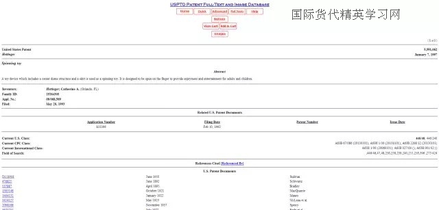 在前面的文章中,咱們方信知識產(chǎn)權(quán)的小編,就指尖陀螺的商標(biāo)專利問題做過一次查證!指尖陀螺在美國不符合外觀申請的條件,而其英文FIDGET SPINNERY有登記申請的記錄。近日,指尖陀螺這款玩具的發(fā)明人開始為人所知。據(jù)證實(shí),指尖陀螺的雛形是迷你旋轉(zhuǎn)器,是一位美國患重癥肌無力的媽媽 Catherine A. Hettinger 為自己女兒而發(fā)明的玩具,她在1993年5月28日向美國官方提交了“spinner toy”的發(fā)明專利申請,于1997年1月7號獲準(zhǔn)注冊。而當(dāng)時這款玩具并沒有熱賣,Catherine A. Hettinger也沒能因?yàn)檫@款發(fā)明獲得收益,最后因?yàn)闊o法擔(dān)負(fù)專利的續(xù)展費(fèi),在2005年1月7號,這項發(fā)明專利失效了。