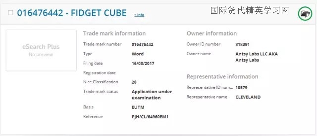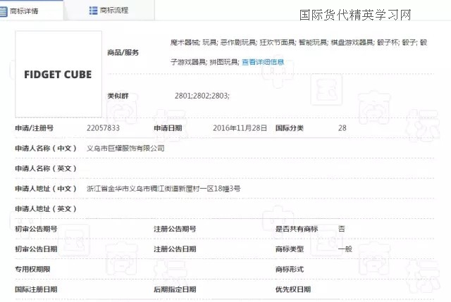 最后,減壓魔方(Fidget Cube),小編查到中國關(guān)于fidget cube 商標(biāo)注冊情況時,瞬間驚呆!從去年11月份到今年1月份,一共有4位申請人提交了fidget cube 申請28類,歐盟和美國也有申請,同一申請人ANTSY Labs. LLC,由此,小編推斷,這款魔方的發(fā)明者很有可能就是這家美國公司,也有可能申請了美國的外觀和發(fā)明!也是在去年下半年,是一名英國人向英國商標(biāo)局提交了fidget cube 28類的商標(biāo)申請。截至目前,fidget cube就是在日本沒有檢索到相同的商標(biāo)申請,但是,日本的商標(biāo)檢索盲期也有2-3個月,因此,也很難說在3月份到現(xiàn)在是否有人提交了fidget cube 的商標(biāo)申請!