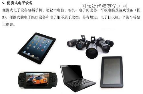 便攜式電子設(shè)備包括手機(jī)、筆記本電腦、相機(jī)、電子閱讀器、平板電腦及游戲設(shè)備(圖3)。便攜式的電子醫(yī)療設(shè)備和電子煙不屬于此類,另有規(guī)定。電子打火機(jī)、平衡車等禁止攜帶。