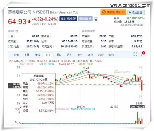 這一公告發(fā)布后,美國(guó)和英國(guó)主要煙草公司的股價(jià)暴跌。萬(wàn)寶路”香煙生產(chǎn)商、煙草巨頭奧馳亞(Altria)集團(tuán)股價(jià)下跌超過(guò)9%,英美煙草下跌7.40%。菲利普莫里斯國(guó)際公司下跌1.66%。全球最大煙草生產(chǎn)商的市值損失了大約260億美元。
