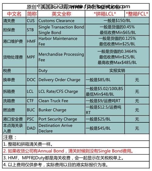 美國(guó)目的港清關(guān)(海運(yùn)整箱和拼箱)有什么費(fèi)用?