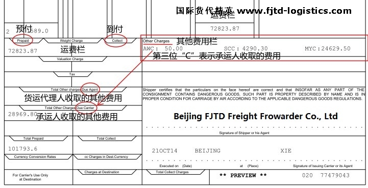 國(guó)際航空運(yùn)單上的AWC、AWA、MYC、SCC等是什么費(fèi)用?