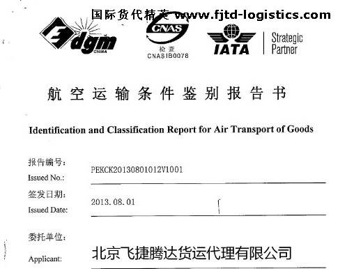 空運鑒定是通過專業(yè)的鑒定機構(gòu)或公司(必須先取得民航局的認可資格)進行檢驗、檢測,由鑒定公司出具《航空運輸條件鑒別報告書》,航空公司和相關(guān)方根據(jù)《航空運輸條件鑒別報告書》判斷是普貨還是危險品。鑒定公司檢驗、檢測后,如果是普貨,就出普貨鑒定;如果是危險品,就出危險品鑒定。