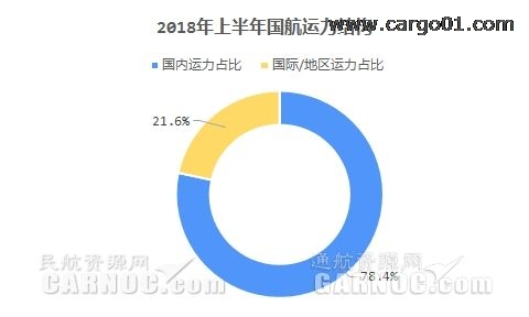 2018年上半年,國航國內(nèi)運(yùn)力占比78.4%,相比2017年上半年下降0.5%,國際/地區(qū)運(yùn)力占比21.6%,同比提高0.5%。