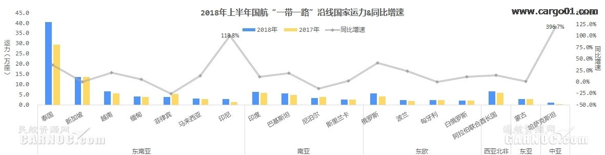 從地域分布來看,國航直飛東南亞國家運(yùn)力最多,為74.4萬座,占“一帶一路”沿線國家總運(yùn)力的64.9%,同比增長20.6%;運(yùn)力排名第二的是南亞,17.8萬座,同比增加6.0%;直飛中亞運(yùn)力增速最快,相比去年同期增加3倍之多。